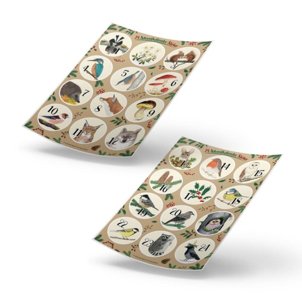 Unsere 24 detailreich illustrierten Zahlen-Sticker machen euer Adventkalender-Bastelprojekt zu etwas ganz besonderem. Zeitlose Naturmotive, realistisch gemalt und schön in Szene gesetzt.