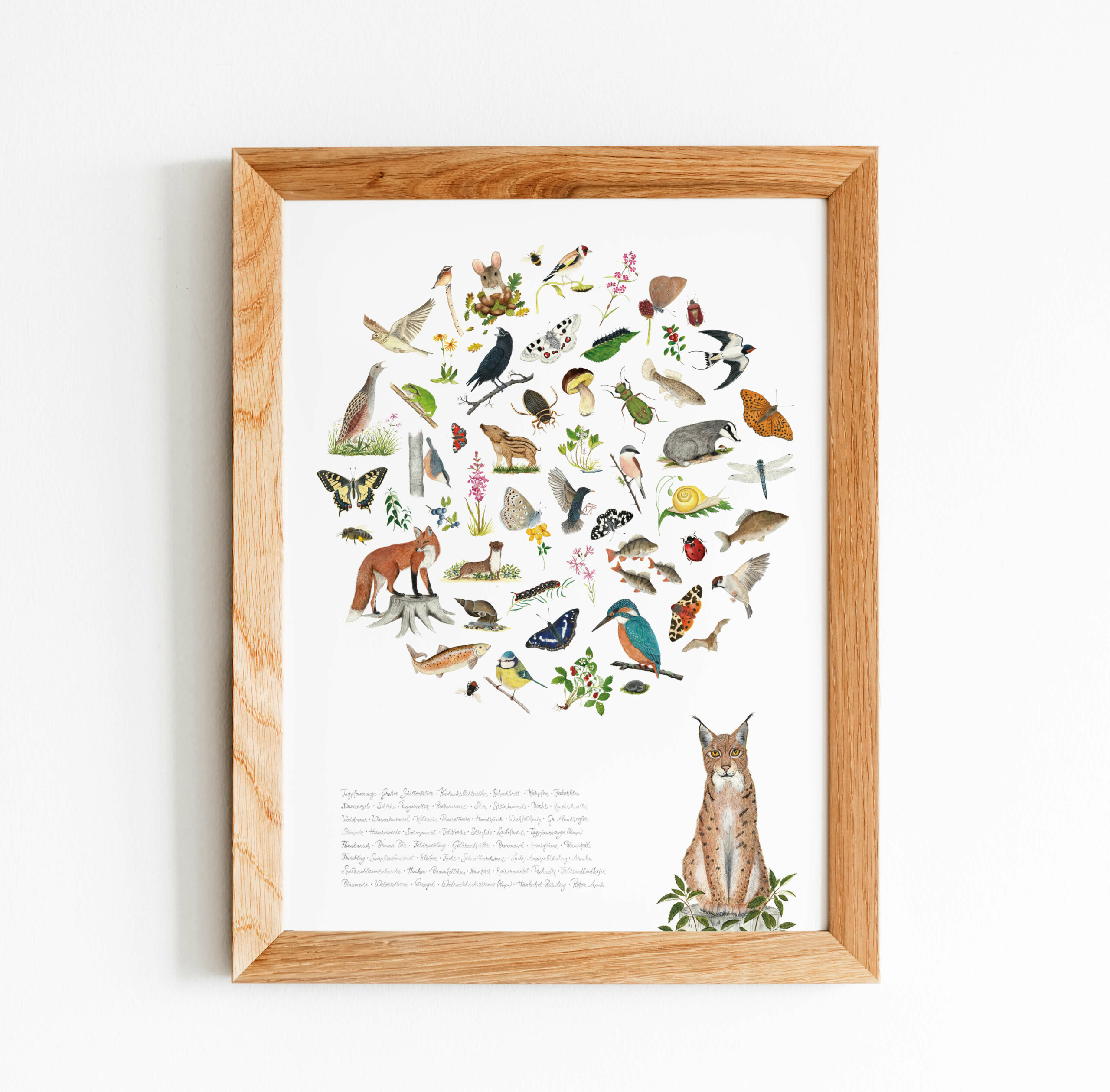 Gedruckt auf 250g Recyclingpapier, verpackt in einem plastikfreien Graspapierumschlag. Klimaneutraler Druck in Österreich (ausgestoßenes CO2 wird durch ein regionales Humusaufbauprojekt kompensiert). Damit die Vielfalt auch vielfältig bleibt, spenden 6,00 Euro von jedem verkauften Poster an den Waldviertler Naturschutzverein FreeNature. Auf der Graspapierverpackung findet sich ein Spenden-Aufkleber, welcher auf die Spendenaktion hinweist. Lieferung ohne Holzrahmen oder Posterleisten.